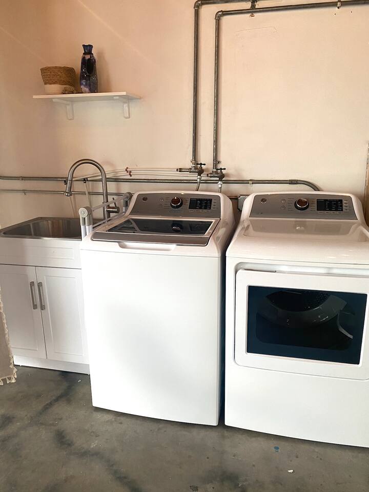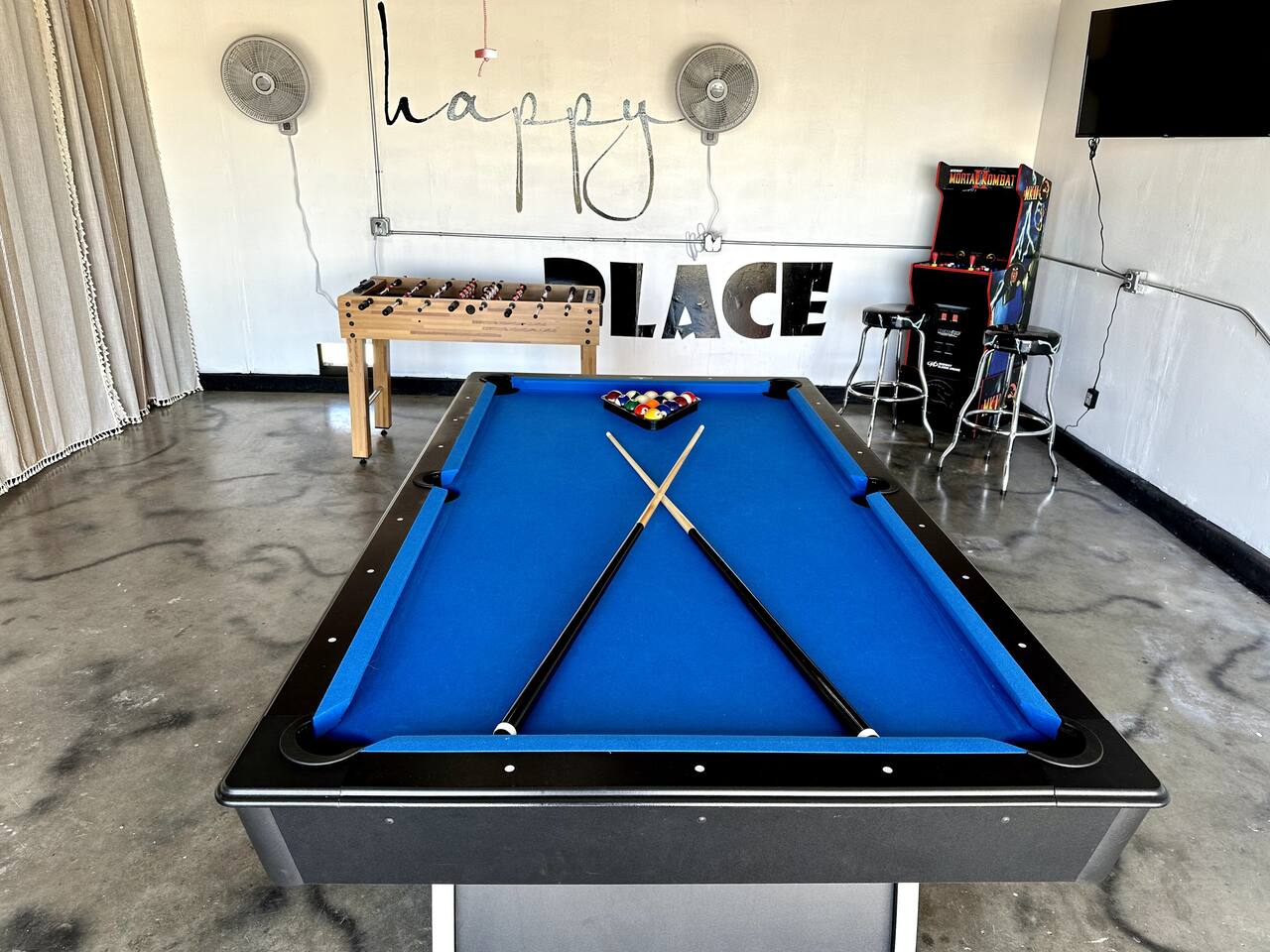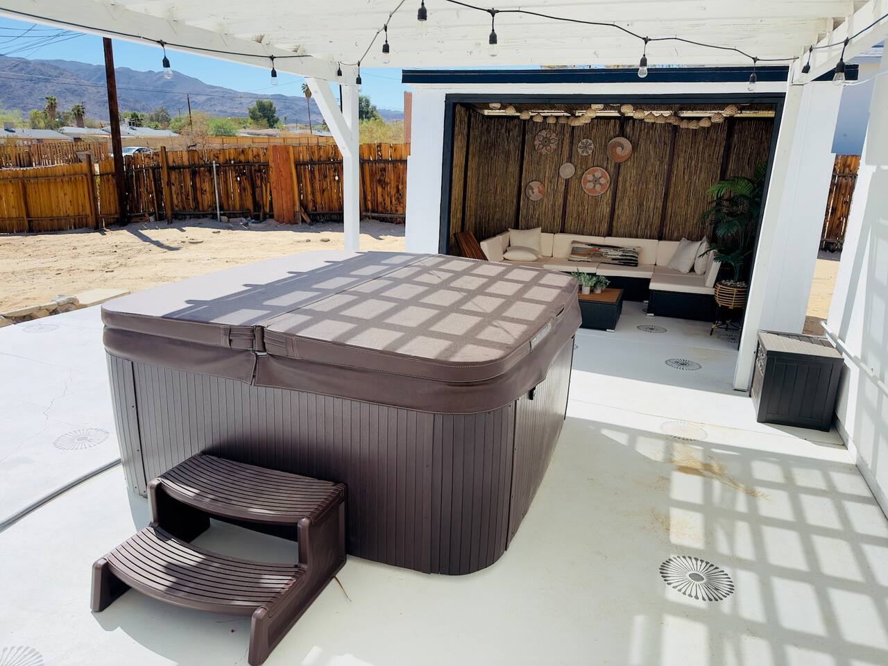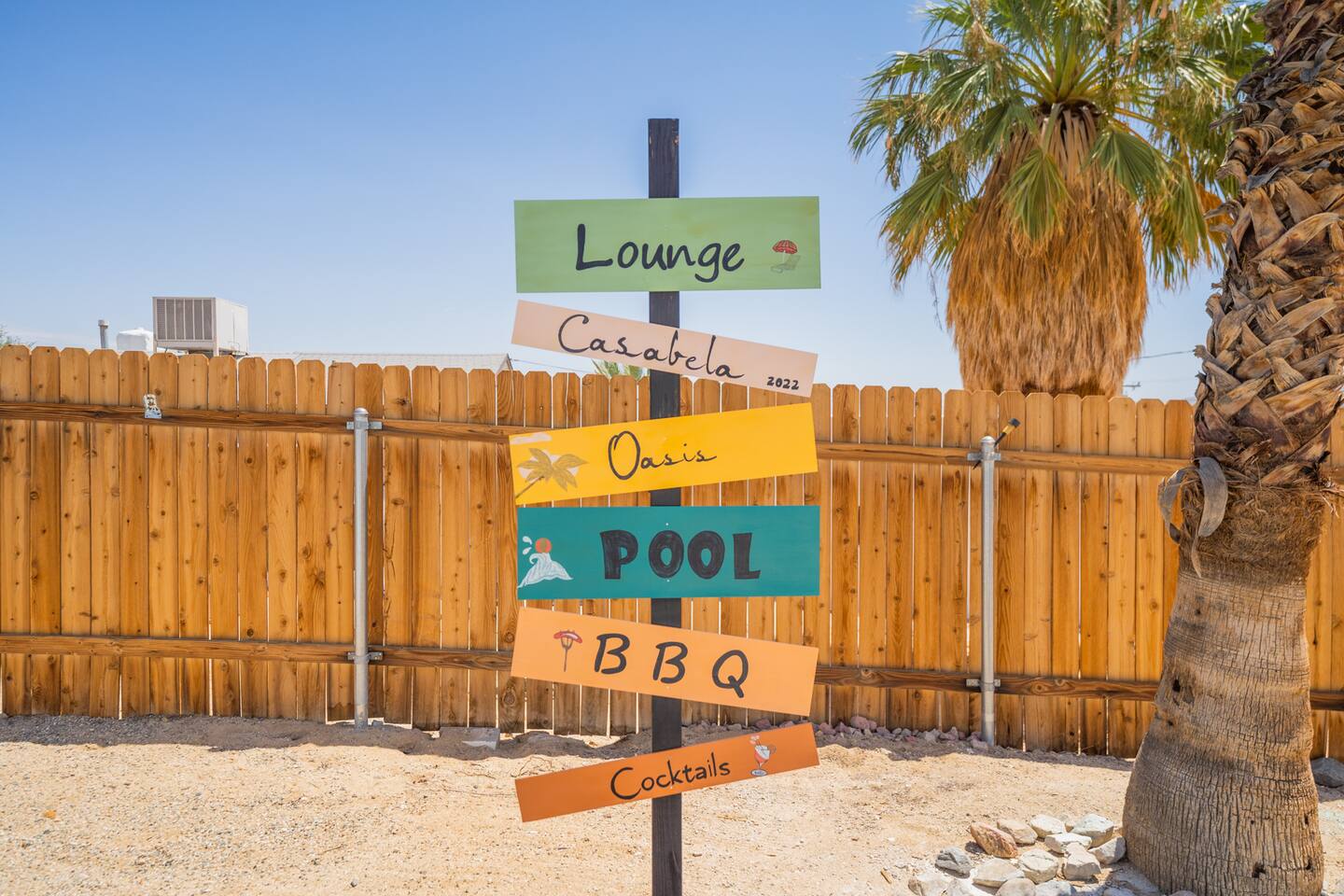 Casabela means "Beautiful Home". We put a good amount of effort to make it very comfy with everything you might need to feel at home. We have fast wifi and a dedicated office space in the master bedroom if you need to work. There is a 55" 4K QLED Roku Smart TV that you can use with your own streaming service accounts. It will log you out of all the streaming services on your checkout date so you don't need to worry about it. The fun part, our game room. We have a foosball table and Mortal Kombat arcade (with 12 extra games) in the garage. And if you haven't played with it yet, we have a HOOKs Ring Toss (Craggy Games) game there as well, use your imagination to set the rules for what happens when somebody lose and you can be playing it and laughing for hours. You can relax in the hot tub while enjoying the beautiful views of the Joshua Tree National Park mountains from our backyard.