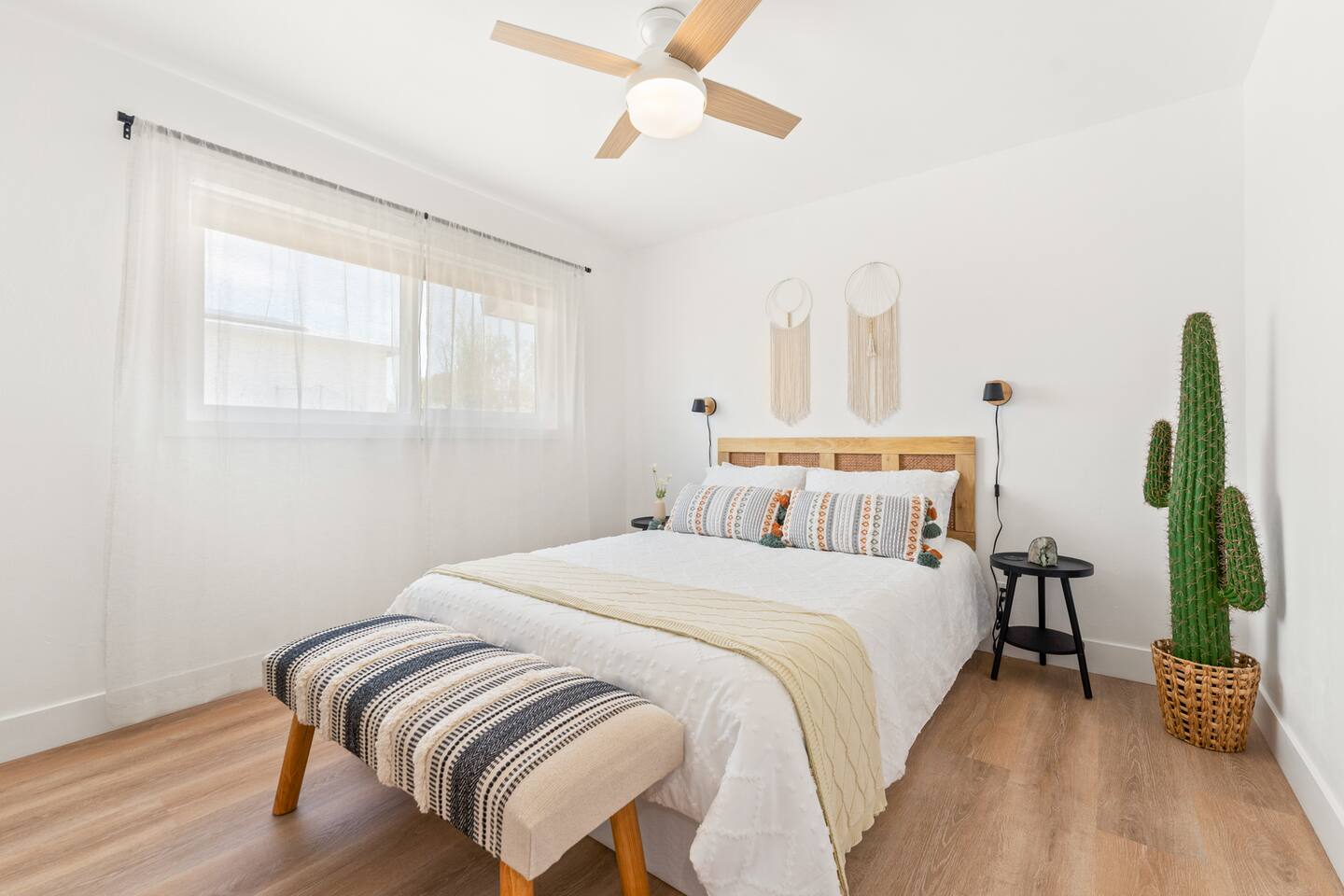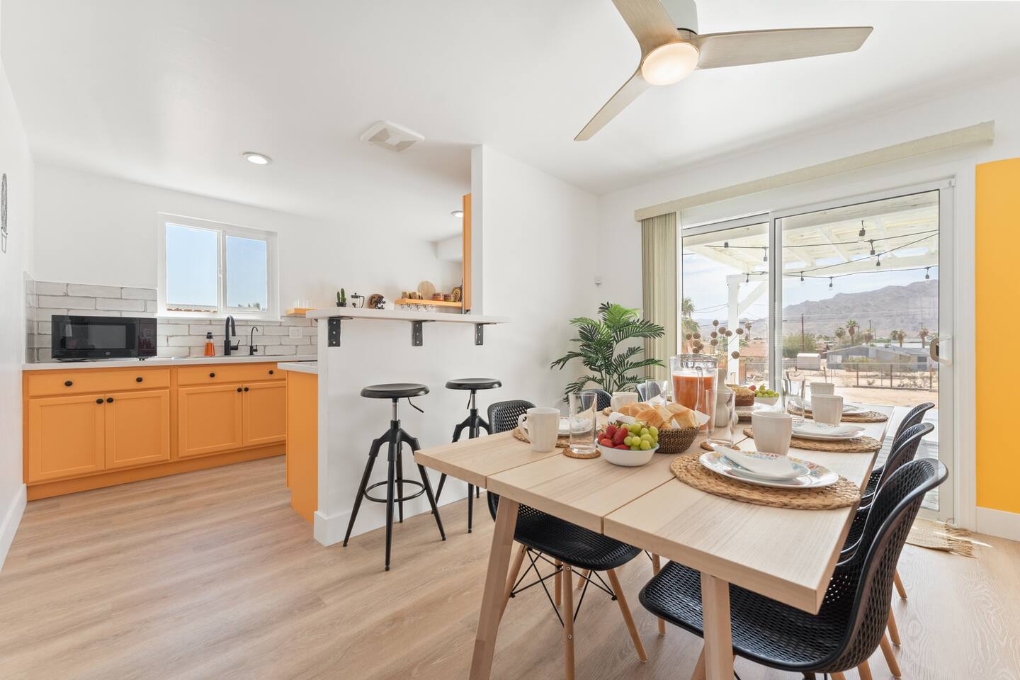 Welcome to Casabela, a mix of modern boho and desert style decor with stunning views of Joshua Tree National Park. We are a 3-min drive from downtown Twentynine Palms (restaurants, starbucks, bars, burgers, pizza, supermarket) and 10-min from Joshua Tree National Park north entrance. Come and relax in this beautiful renovated home.
